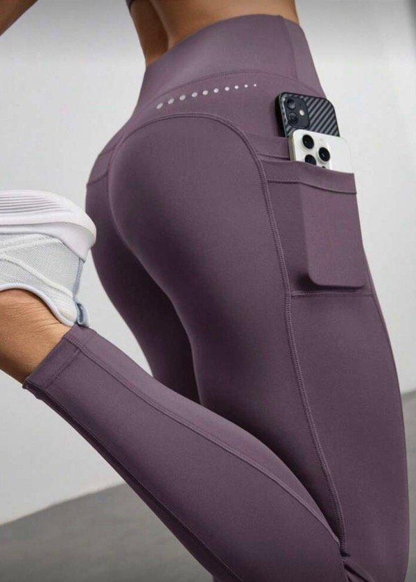 Calza larga cintura alta de lycra con doble bolsillo lateral.