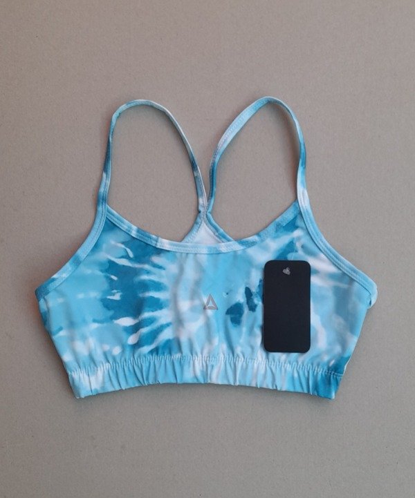 Top tira fina estampado celeste y blanco.