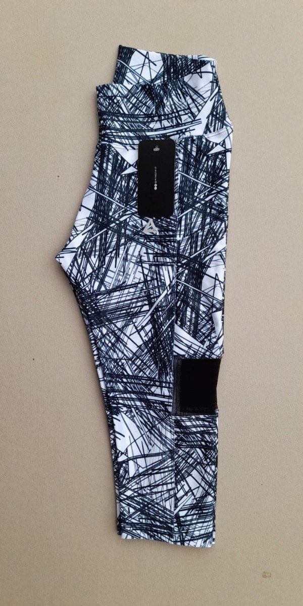 Calza pescadora estampada y cintura alta, con transparencias y bolsillos laterales.