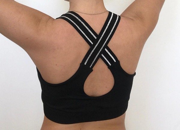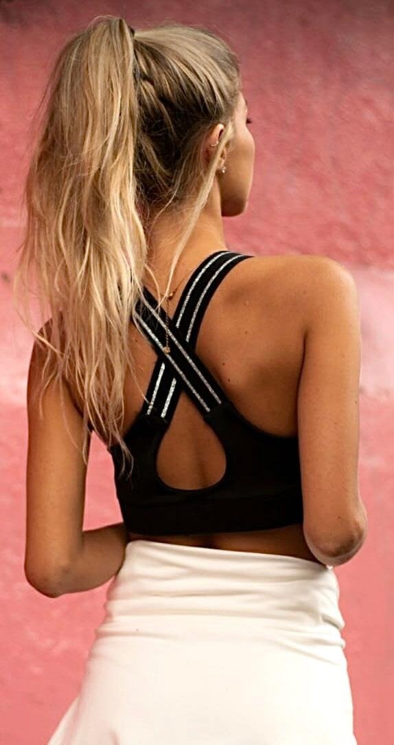 Top realizado en microfibra gruesa, con breteles gruesos, con detalle en plateado.